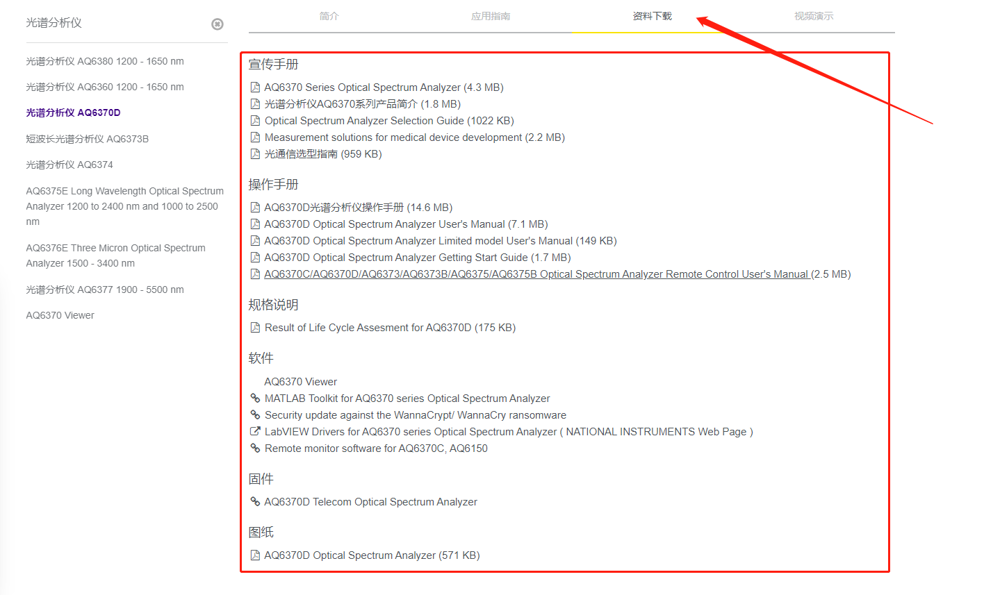 三、進入產品詳情頁面,點擊“下載技術資料”