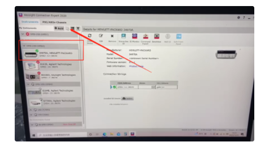 在I/O軟件內(nèi),找到搜索按鈕并點(diǎn)擊。通過左側(cè)邊欄GPIB-USB,可以看到34970A搜索出來。
