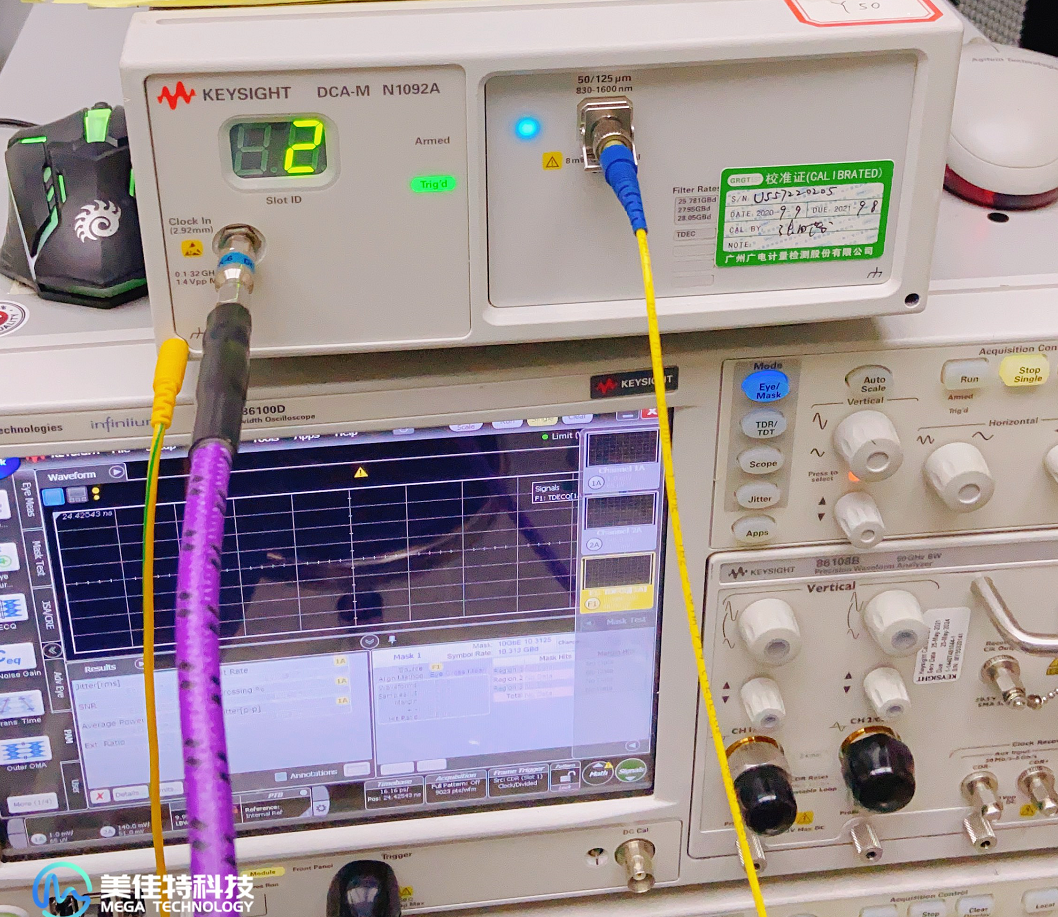 (1)根據(jù)檢測(cè)板將誤碼儀給予的電子信號(hào)轉(zhuǎn)成光信號(hào)燈不亮傳遞到25G光模塊,根據(jù)光纖尾纖連接光數(shù)字示波器中;