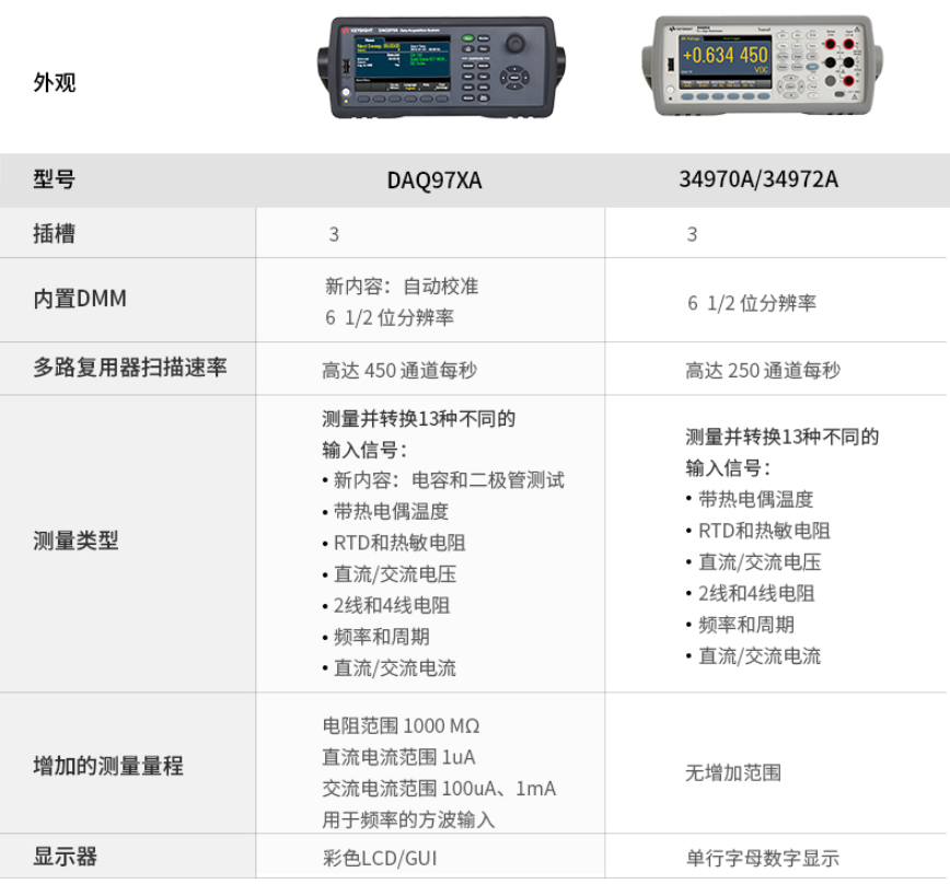 在現(xiàn)代科學和工程領(lǐng)域,數(shù)據(jù)采集儀是一種關(guān)鍵的工具,用于測量、記錄和分析各種信號和數(shù)據(jù)。在數(shù)據(jù)采集儀市場上,德科技的DAQ970A和Keysight(原Agilent)的34970A是兩款備受關(guān)注的產(chǎn)品。本文將比較這兩款數(shù)據(jù)采集儀的主要區(qū)別,以幫助讀者選擇適合自己需求的設(shè)備。