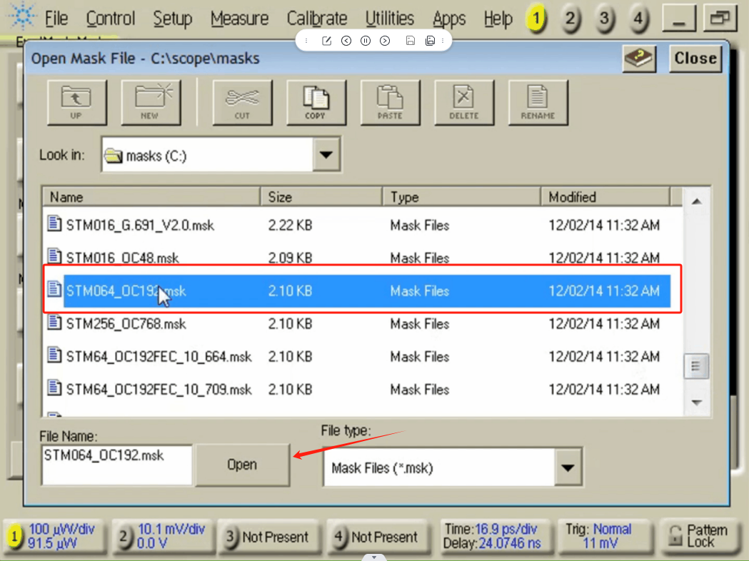 3.打開"Open Mask File for Mask 5",對話框,選擇眼圖模板。