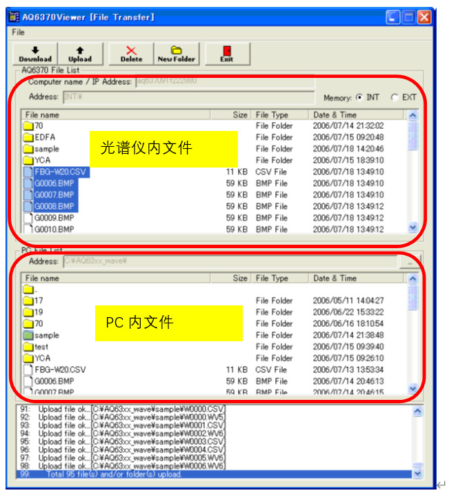 這個(gè)程序與方法二的區(qū)別在于,它可以下載文件,也可以上傳文件到光譜儀內(nèi)部。而方法二中通過(guò)Folder Sharing的方法,只能下載文件但不能上傳文件到光譜儀內(nèi)存上哦!
