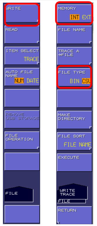 這一步,當(dāng)我們?cè)诠庾V儀USB口插上U盤,然后通過(guò)FILE-Write-Memory (INT或EXT)直接選擇EXT作為存儲(chǔ)位置,那么接下來(lái)保存的文件就會(huì)直接存儲(chǔ)到U盤上了。這是比較便捷的途徑。