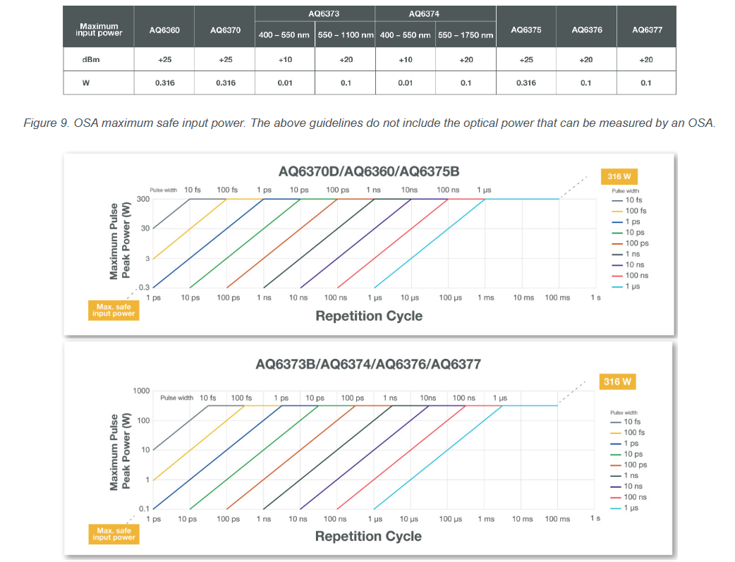 ? AQ6373E的近距離動(dòng)態(tài)范圍是60 dB(λ PK ± 0.5 nm),而AQ6374E的近距離動(dòng)態(tài)范圍是55 dB(λ PK ± 0.5 nm),前者具有更高的信噪比。