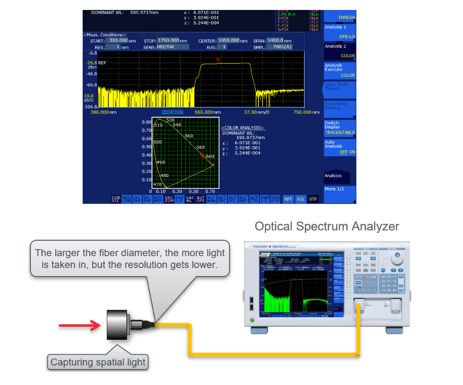 ? 醫(yī)療和生物領(lǐng)域:它們可以測量和分析用于照明、指示、感測以及其它應(yīng)用的可見LED的光譜,支持大芯徑光纖的輸入,可以有效獲得LED光并對其光譜執(zhí)行測量。內(nèi)置色彩分析功能將自動(dòng)對主波長和光源的色度坐標(biāo)及色溫做出評價(jià)。