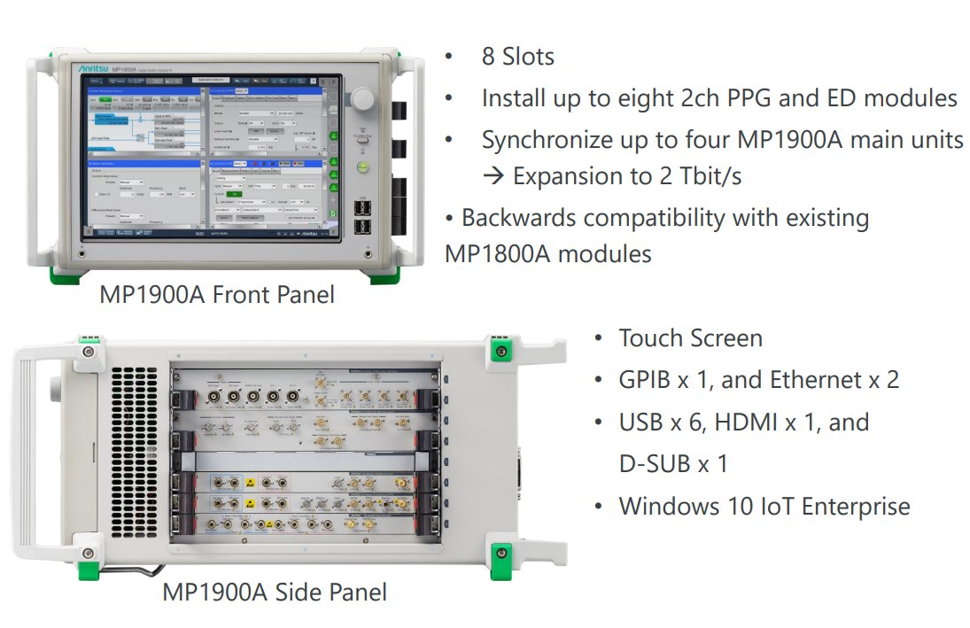 Anritsu展示了其BERTWave MP2110A與MP1900A 56G PAM4 BERT能夠結(jié)合起來(lái)提供針對(duì)400Gbps光芯片與模塊的TDECQ測(cè)量。這表明MP1900A是MP2110A的一個(gè)相關(guān)產(chǎn)品,且兩者可以協(xié)同工作以進(jìn)行特定類型的測(cè)試。