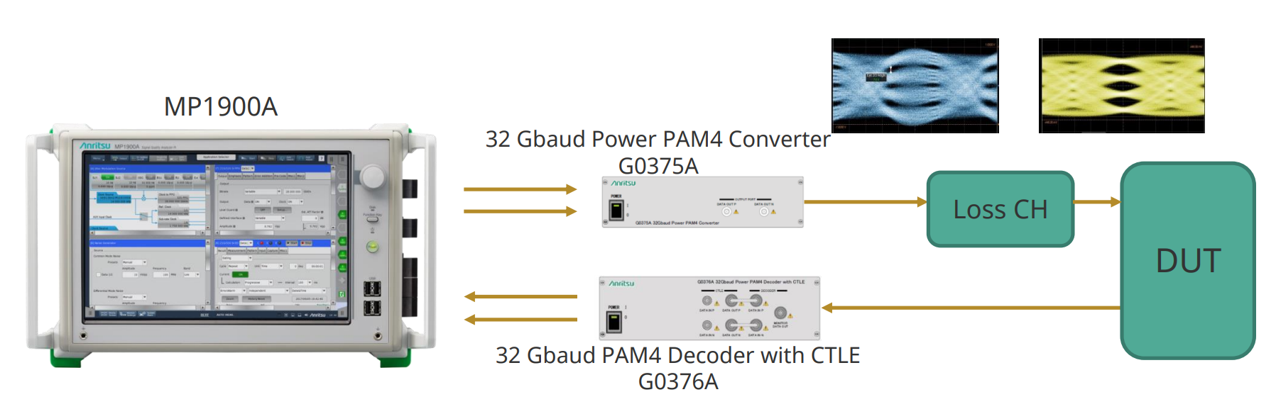 • MP1900A是一款高性能的BERT,能夠生成多通道FEC模式信號(hào),如400GbE PAM4信號(hào),并測(cè)量抖動(dòng)容忍度。它能夠?yàn)?00, 200, 100, 50, 和25 GbE生成定義的RS-FEC模式,并使用DUT內(nèi)部的BER計(jì)數(shù)數(shù)據(jù)來(lái)支持。