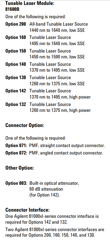選件142和132:具有單個高功率輸出端口,其中選件132覆蓋1260nm至1375nm的波長范圍。