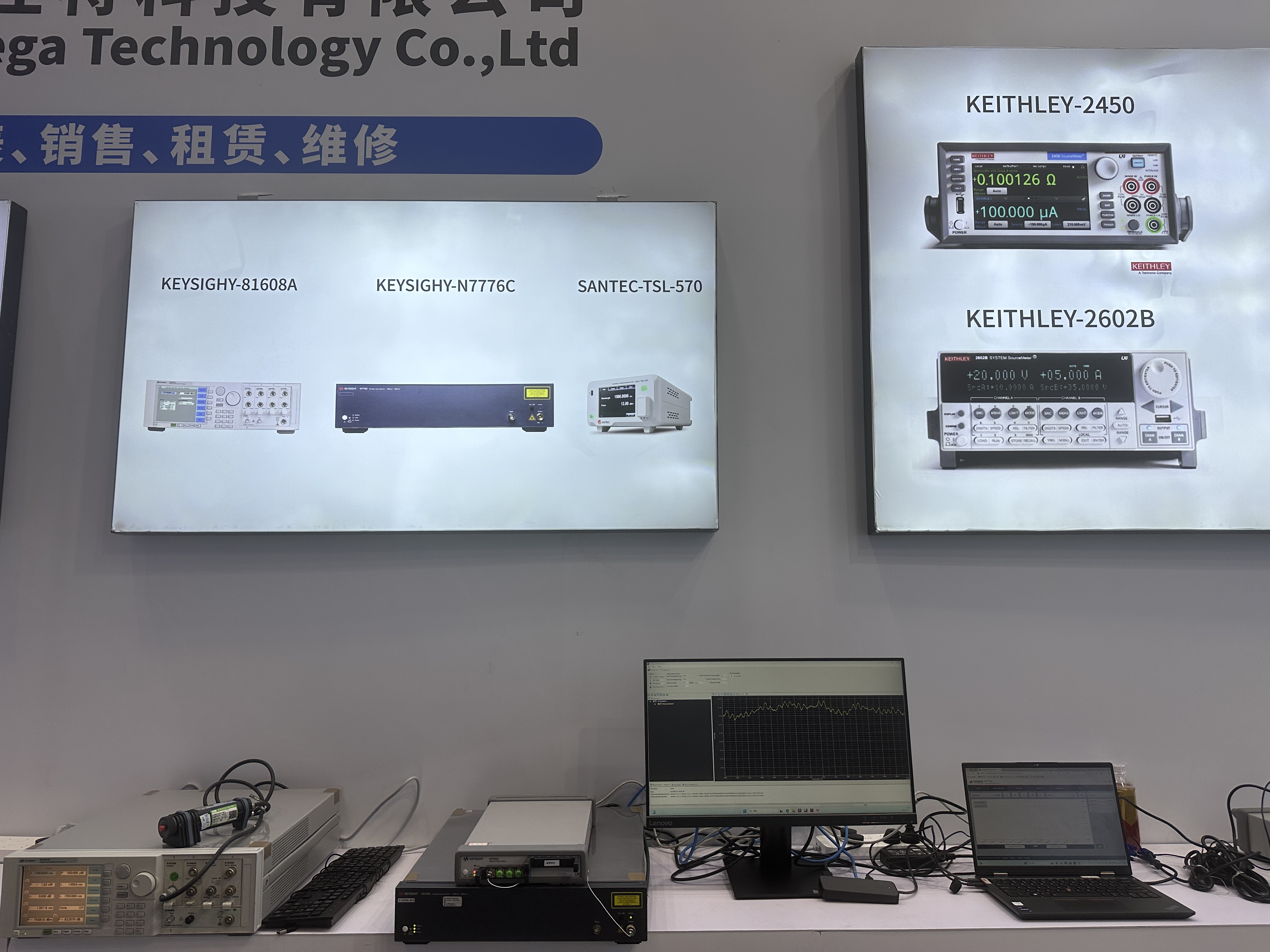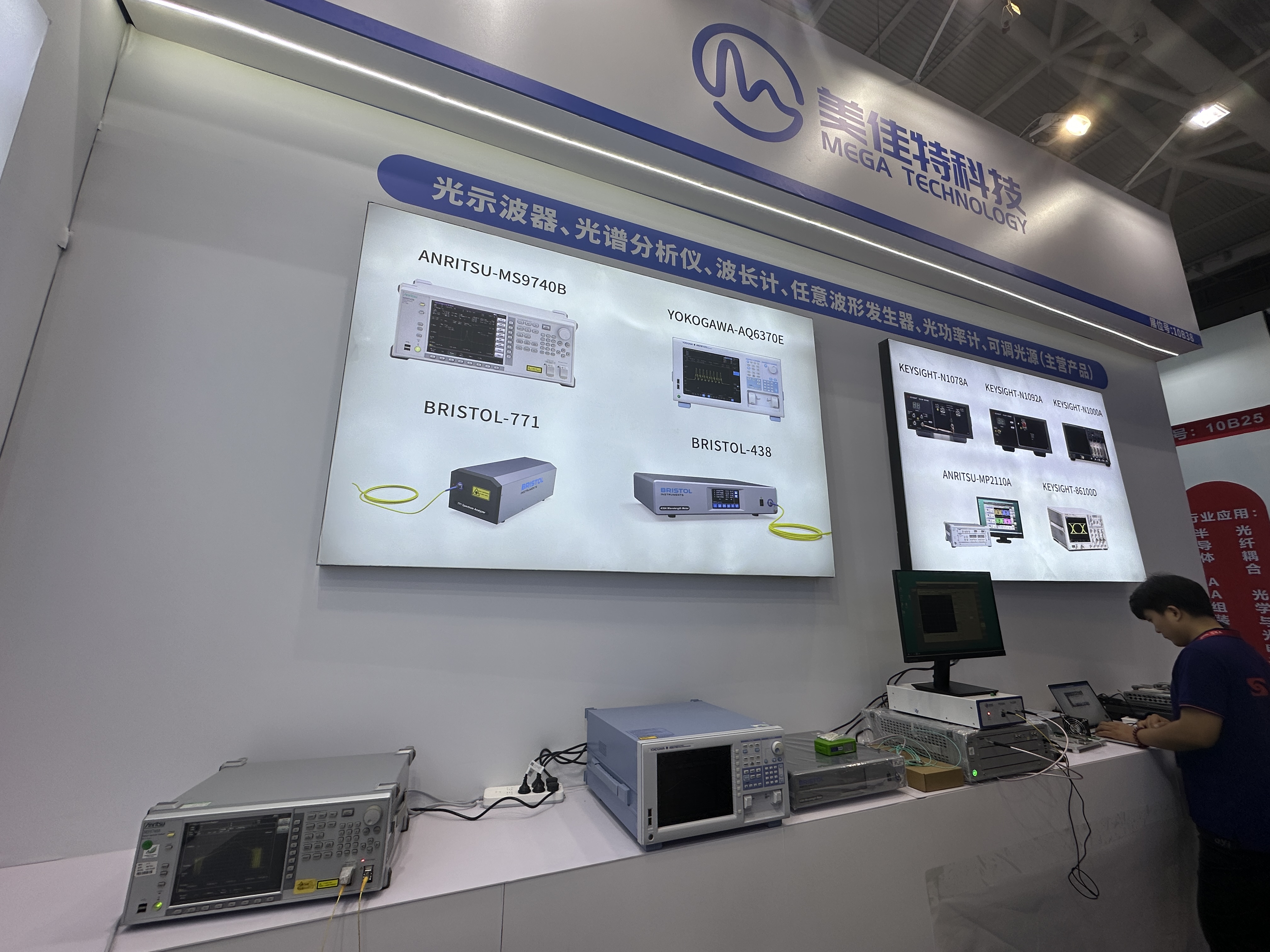 主要展示了是德、安立、R&S、橫河、BRISTOL等品牌的光通訊測試儀器