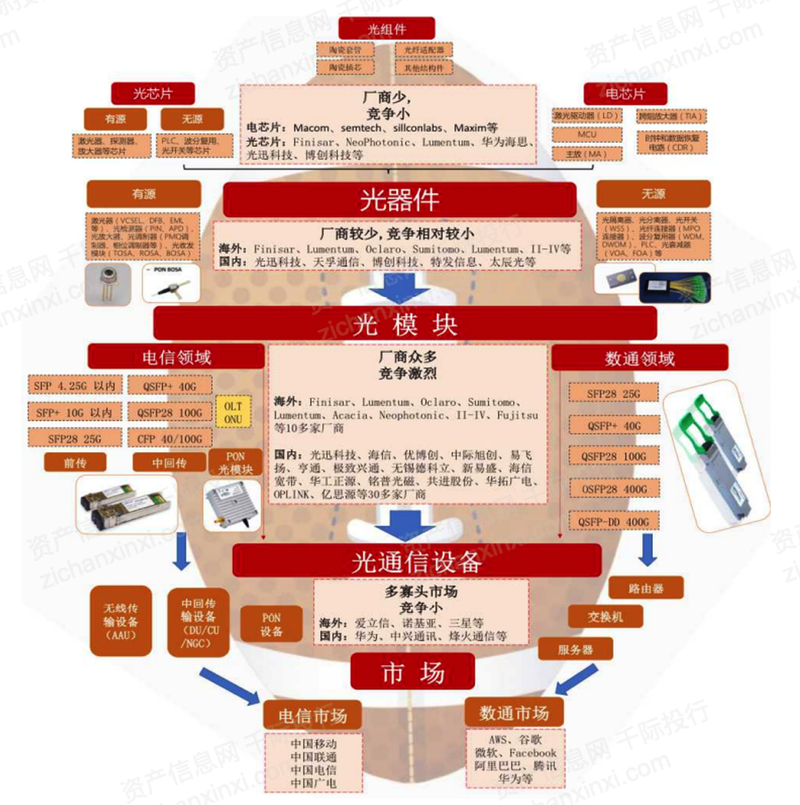 圖:橄欖型格局分布的光通信產業(yè)鏈