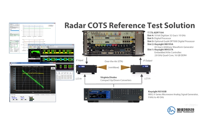 寬帶脈沖雷達測試解決方案結合了 Keysight Technologies、KJ Microwave 和 Virginia Diodes 的商用現(xiàn)成 COTS 模塊化硬件和軟件,為雷達波形生成和分析提供了靈活的多通道測試臺。